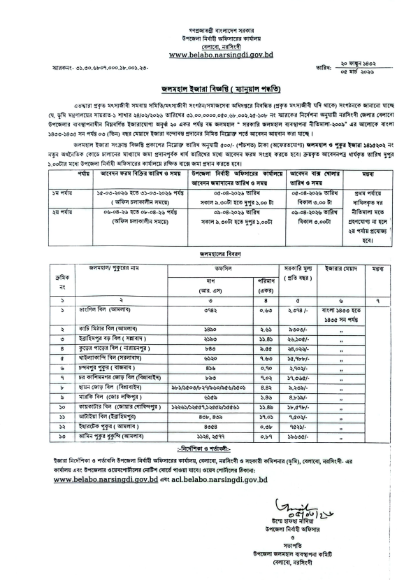 জলমহাল ইজারা বিজ্ঞপ্তি(১৪৩৩-১৪৩৫)
